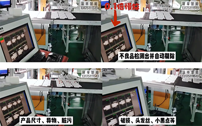 3、盈泰德視覺識別系統(tǒng)接收到圖片信息后進(jìn)行一系列的處理、分析、進(jìn)行良品/不良品判斷,界面實(shí)時(shí)輸出檢測信息。若檢測到產(chǎn)品不符合預(yù)先設(shè)定的數(shù)據(jù),輸出NG信號;若檢測OK,產(chǎn)品按客戶要求進(jìn)入下一流程。