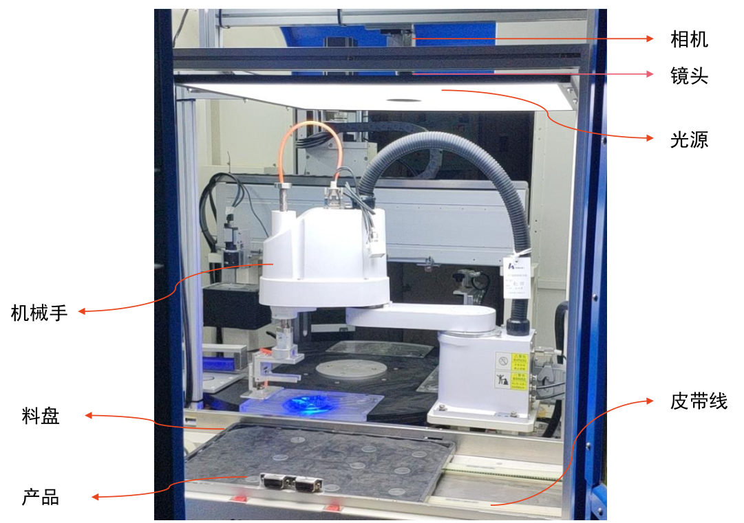 定位原理概述 系統(tǒng)架構(gòu) 視覺(jué)定位系統(tǒng)采用打正向光方式,光源在機(jī)械手上方,CCD從上往下拍攝,進(jìn)行圖像…